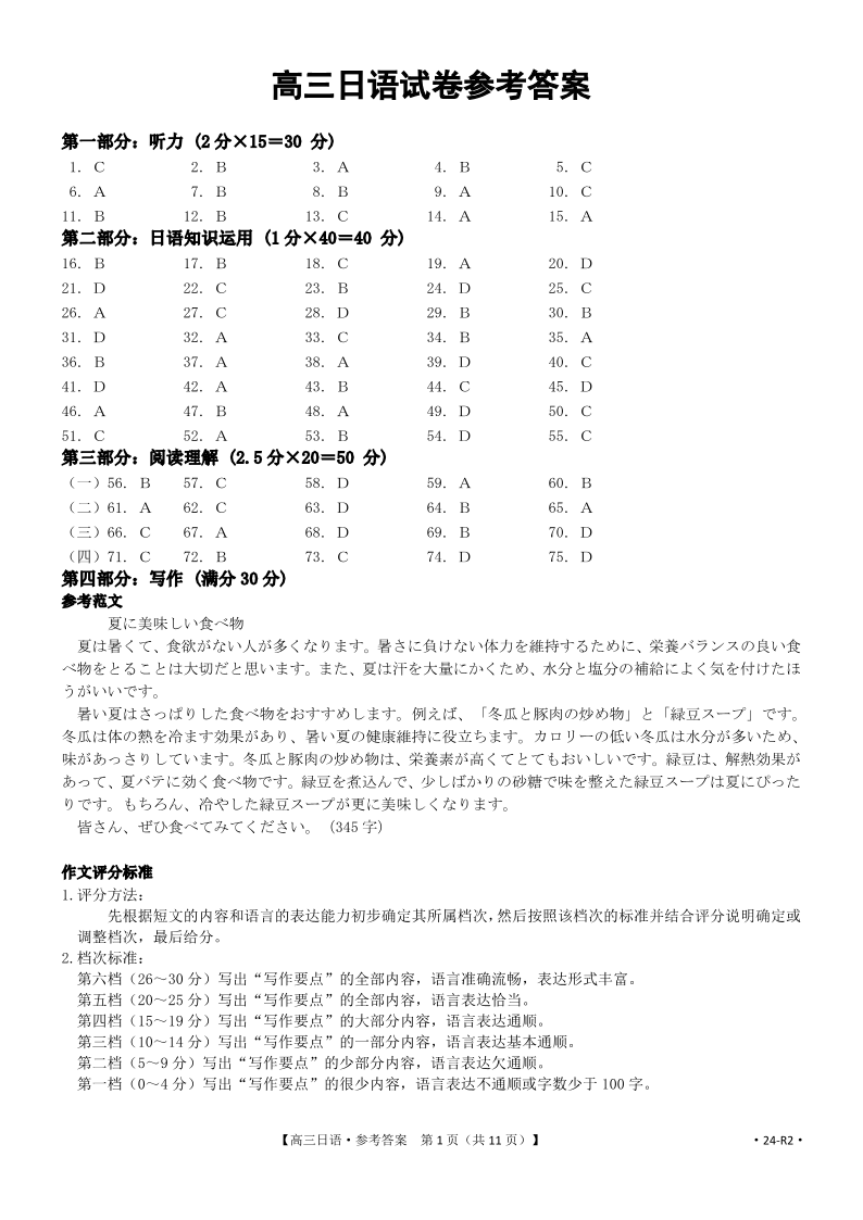 2024届广东省部分学校高三上学期8月联考 日语答案
