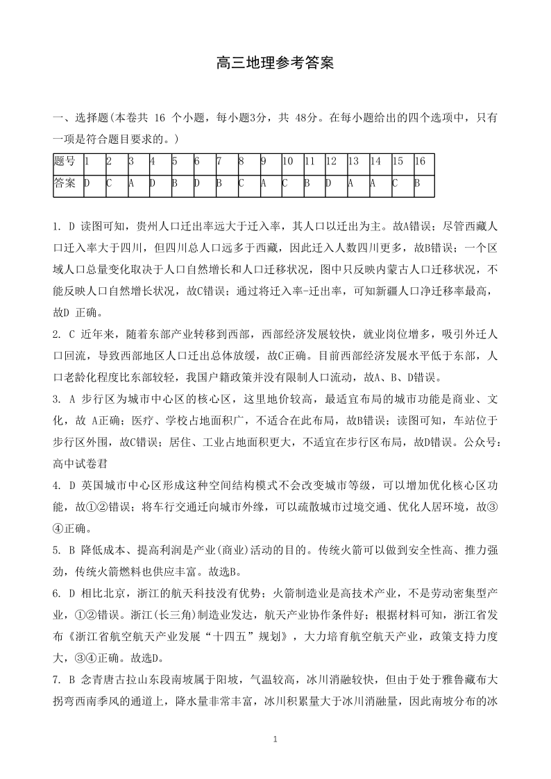 2024届广东省部分学校高三上学期8月联考 地理答案