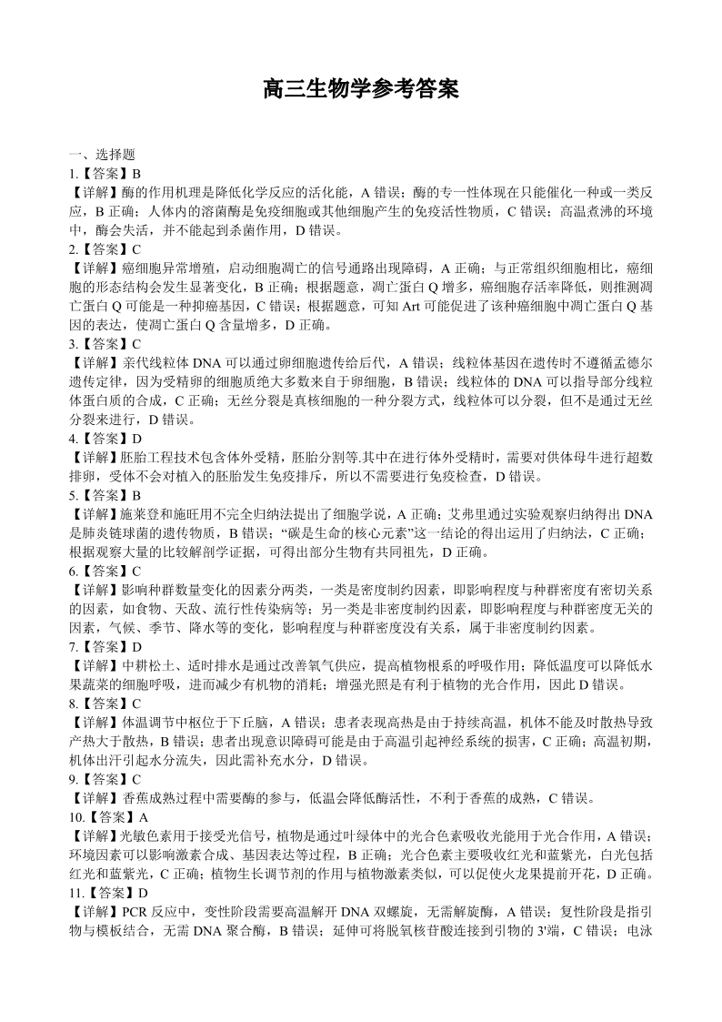 2024届广东省部分学校高三上学期8月联考 生物答案