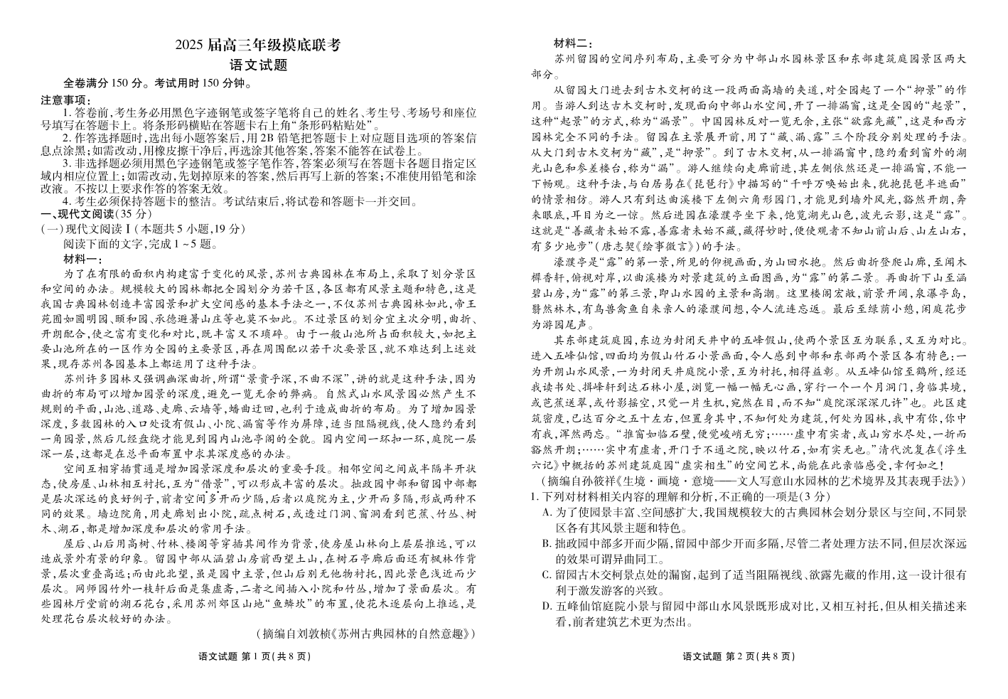 广东省衡水金卷2025届高三年级上学期8月摸底联考+语文