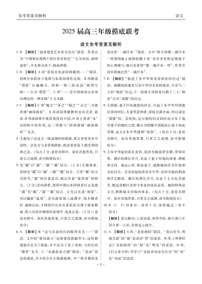 广东省衡水金卷2025届高三年级上学期8月摸底联考+语文答案