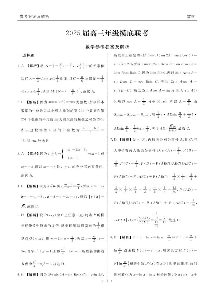 广东省衡水金卷2025届高三年级上学期8月摸底联考+数学答案