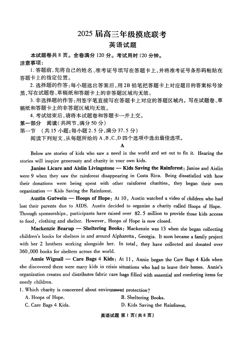 广东省衡水金卷2025届高三年级上学期8月摸底联考+英语