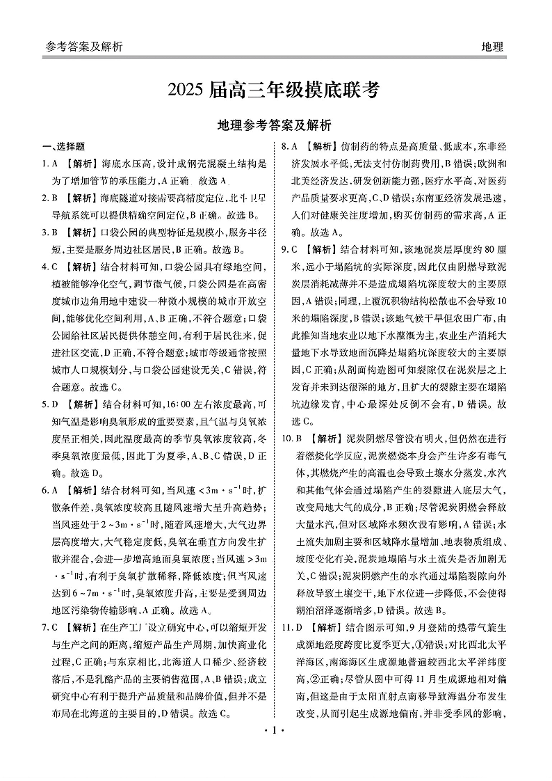 广东省衡水金卷2025届高三年级上学期8月摸底联考+地理答案