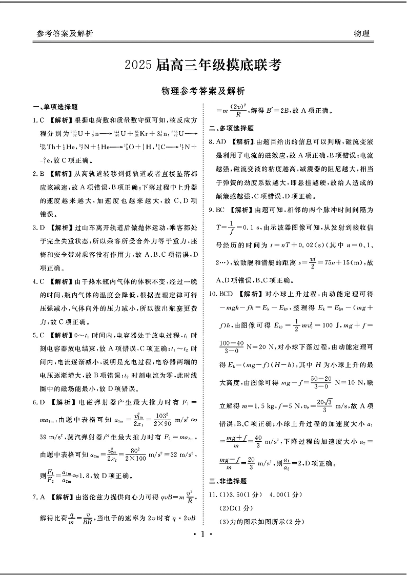 广东省衡水金卷2025届高三年级上学期8月摸底联考+物理答案