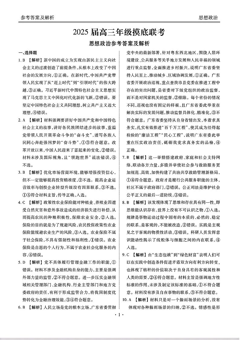 广东省衡水金卷2025届高三年级上学期8月摸底联考+政治答案