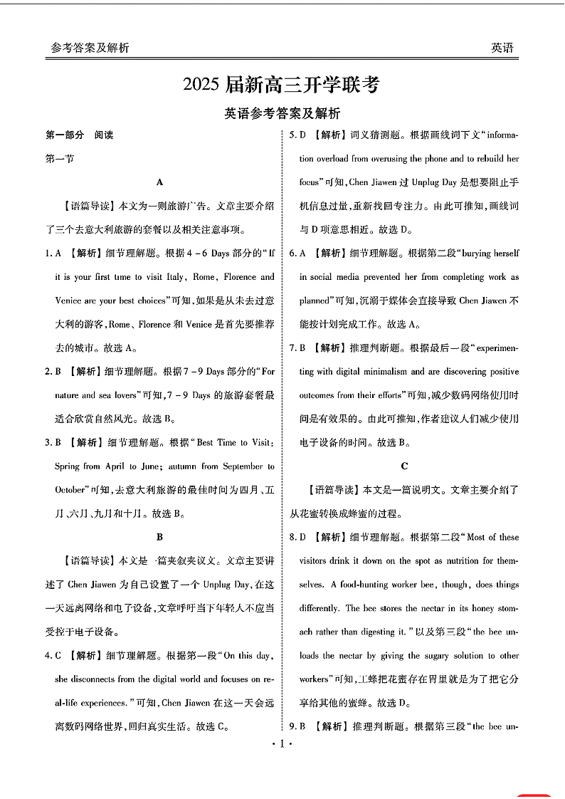 2025届广东衡水金卷新高三8月开学联考+英语答案