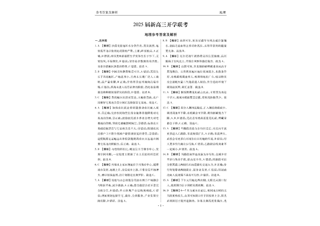 2025届广东衡水金卷新高三8月开学联考+地理答案