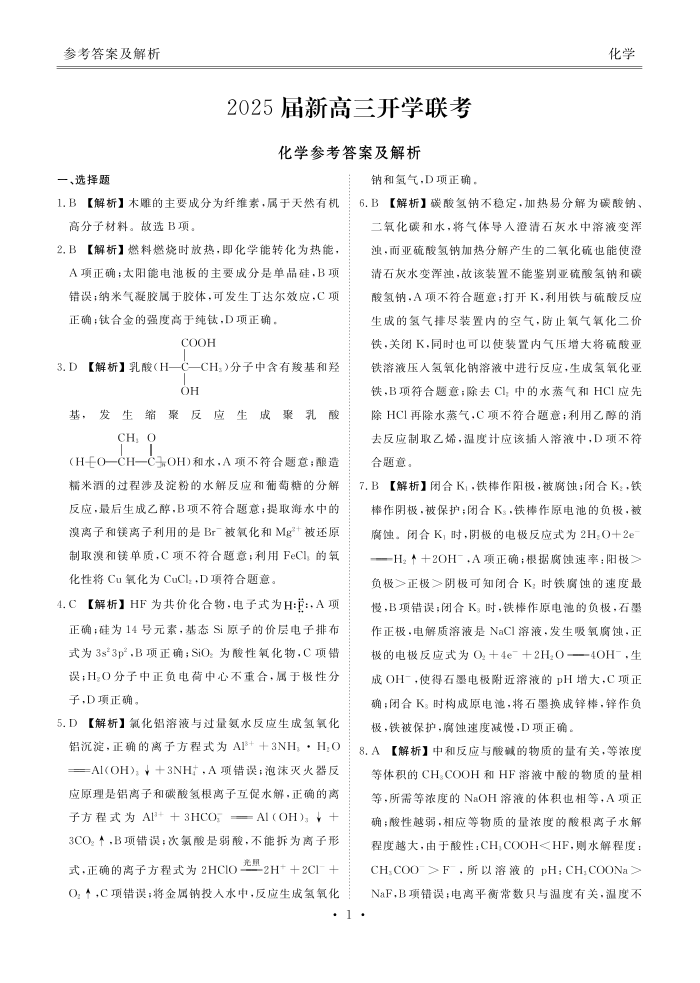 2025届广东衡水金卷新高三8月开学联考+化学答案