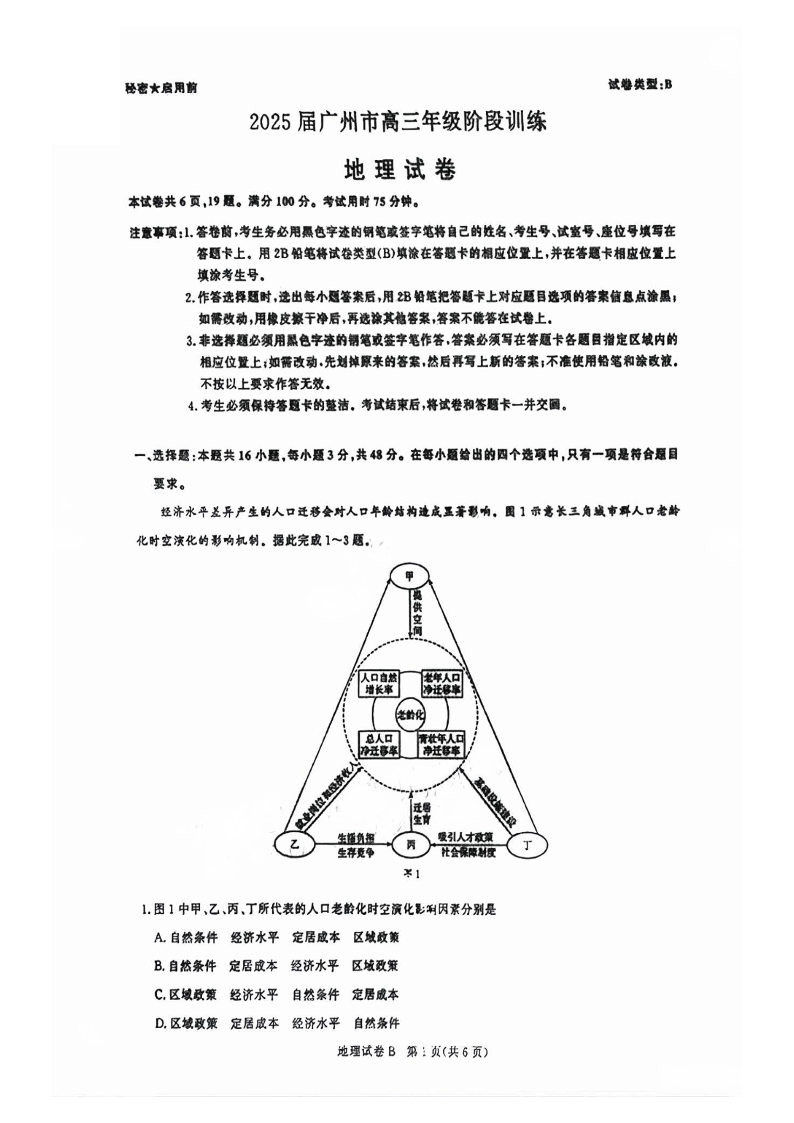 广东省2025届广州市高三年级阶段训练暨8月摸底考试(市调研考)地理