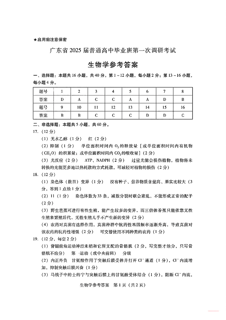 广东省2024-2025学年高三上学期毕业班第一次调研考试+生物答案