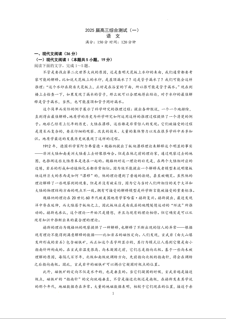广东省华南师范大学附属中学2025届高三综合测试(一)语文