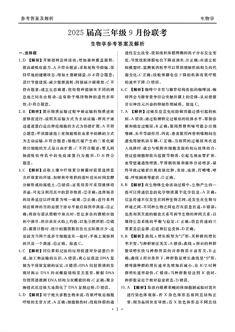 广东省2025届高三年级衡水9月份大联考+生物答案