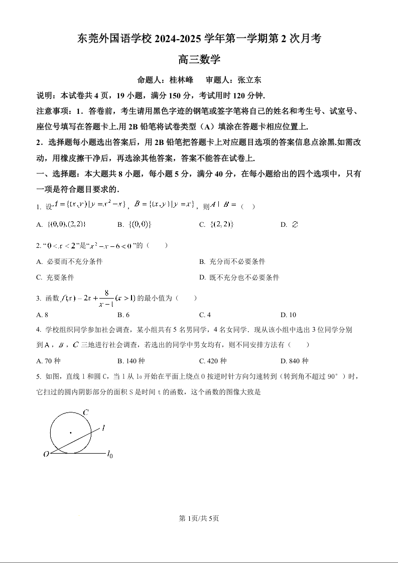 广东省东莞市东莞外国语学校2025届高三上学期10月月考+数学