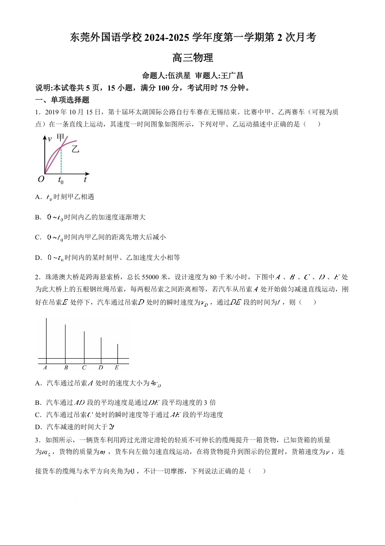 广东省东莞市东莞外国语学校2025届高三上学期10月月考+物理