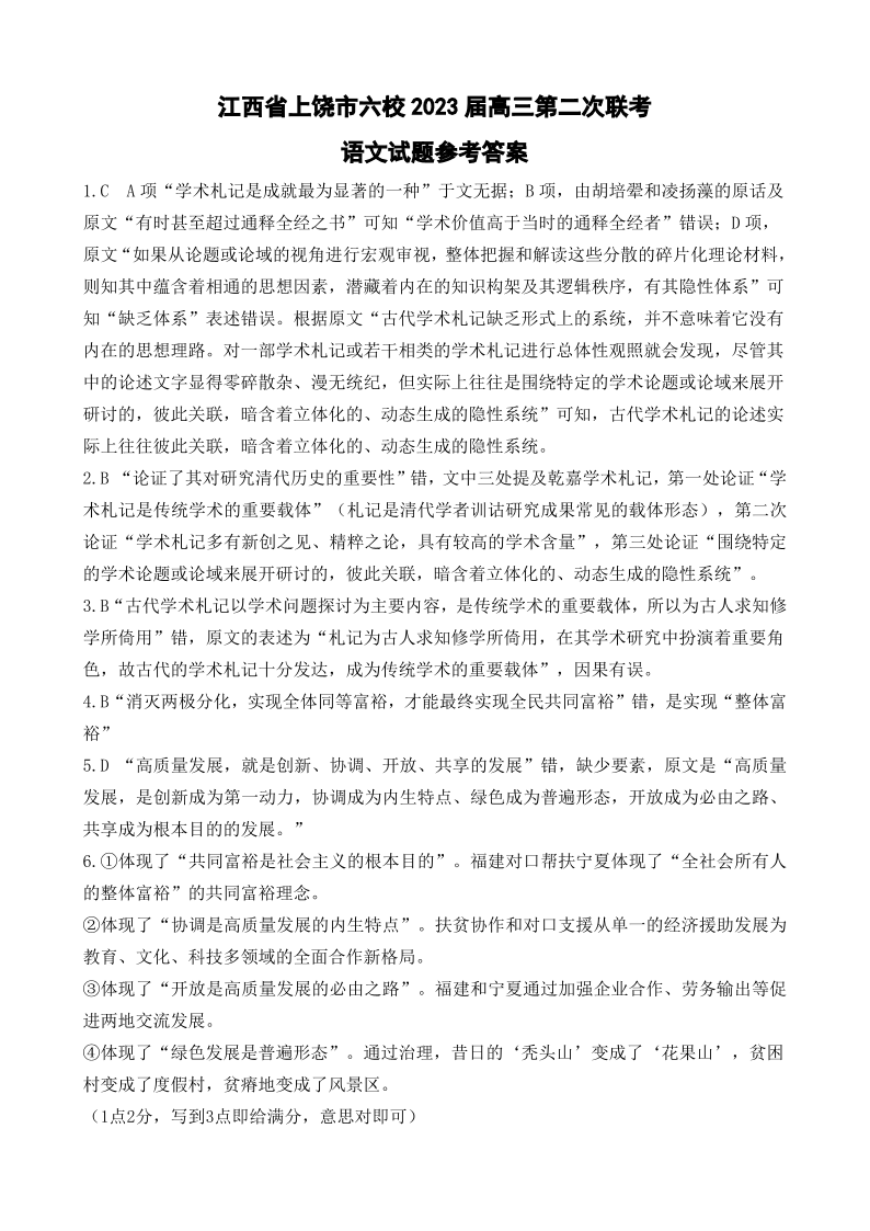江西省上饶市六校2023届高三第二次联考 语文答案