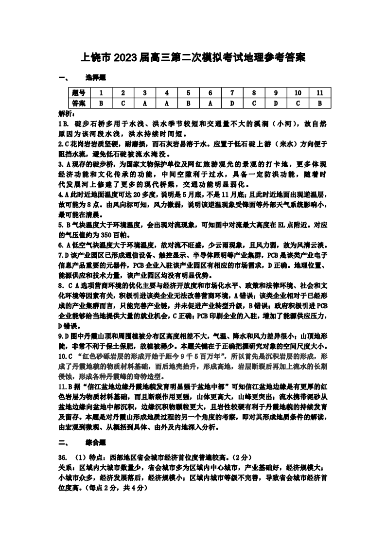 上饶市2023届第二次高考模拟考试 文综地理答案