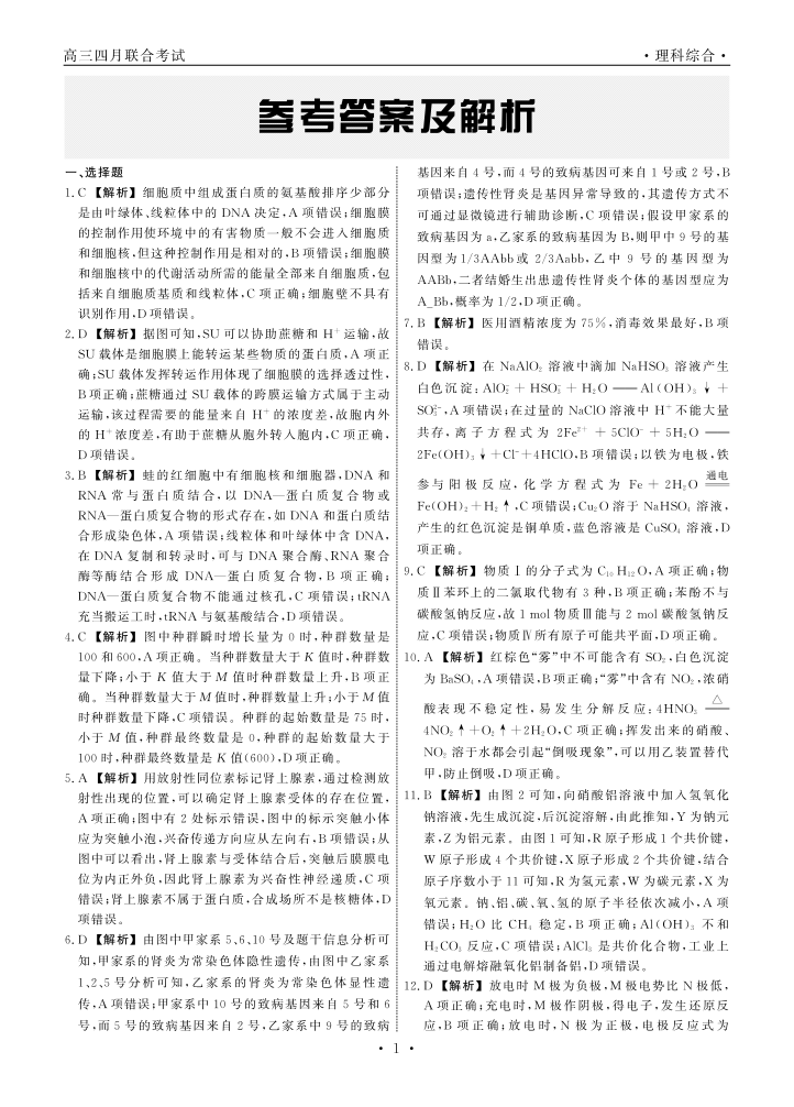 江西省赣抚吉十一校联盟体2023届高三4月联考 理综答案