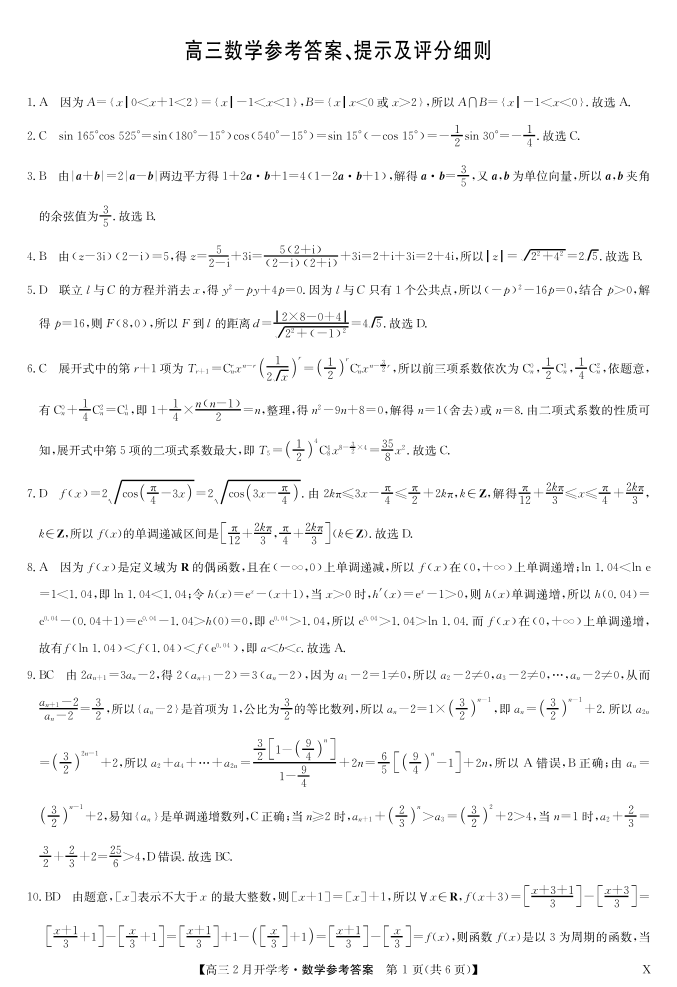 九师联盟2023-2024学年下学期高三2月开学考试 数学答案