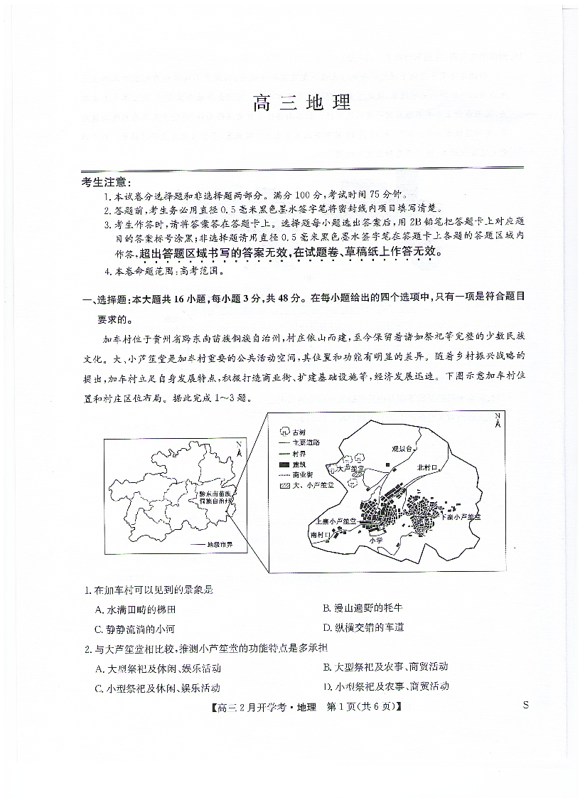九师联盟2023-2024学年下学期高三2月开学考试 地理