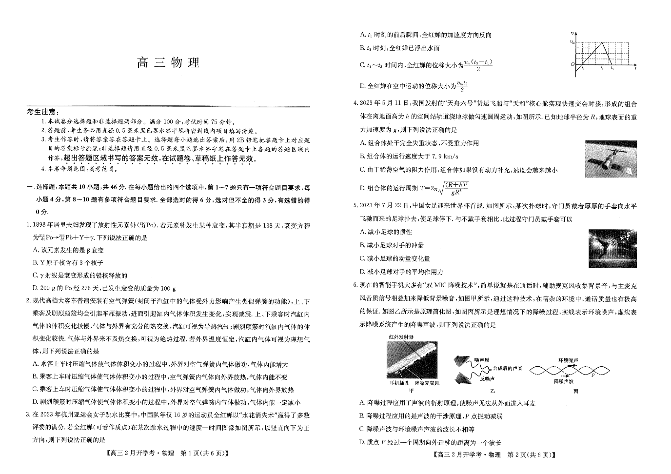 九师联盟2023-2024学年下学期高三2月开学考试 物理