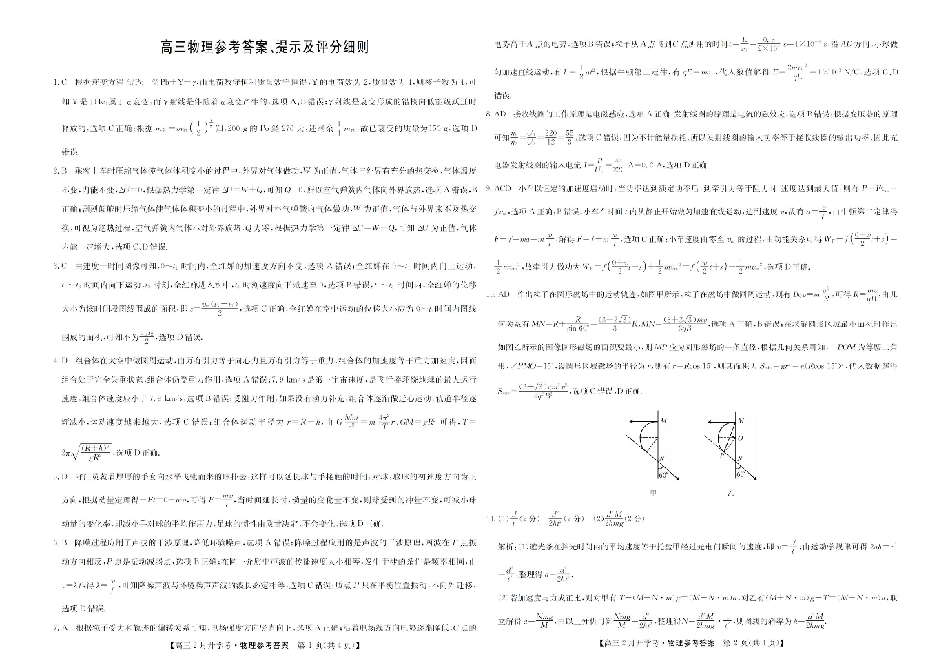 九师联盟2023-2024学年下学期高三2月开学考试 物理答案