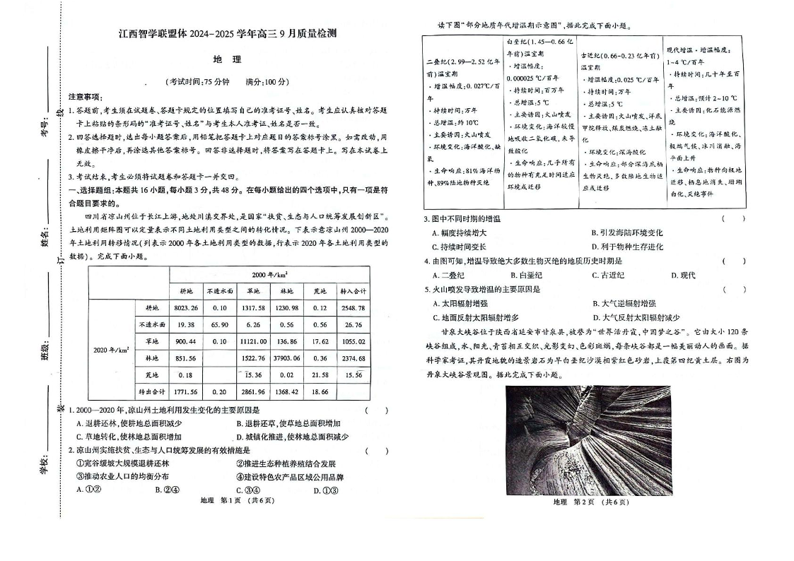 江西智学联盟体2024-2025学年高三9月质量检测+地理