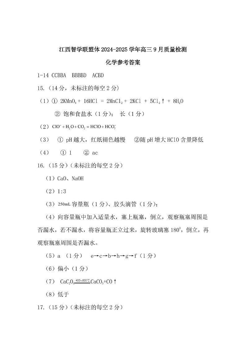 江西智学联盟体2024-2025学年高三9月质量检测+化学答案