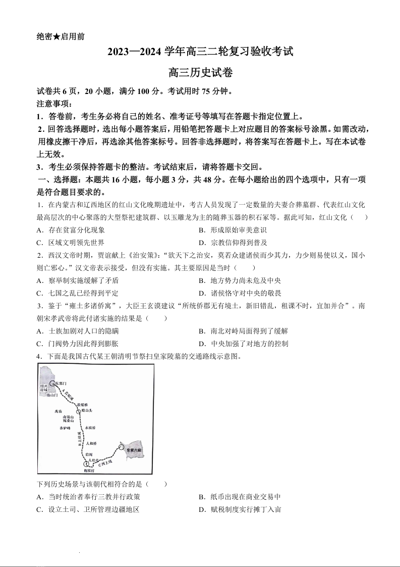 江西稳派2023-2024学年高三二轮复习验收考试+历史