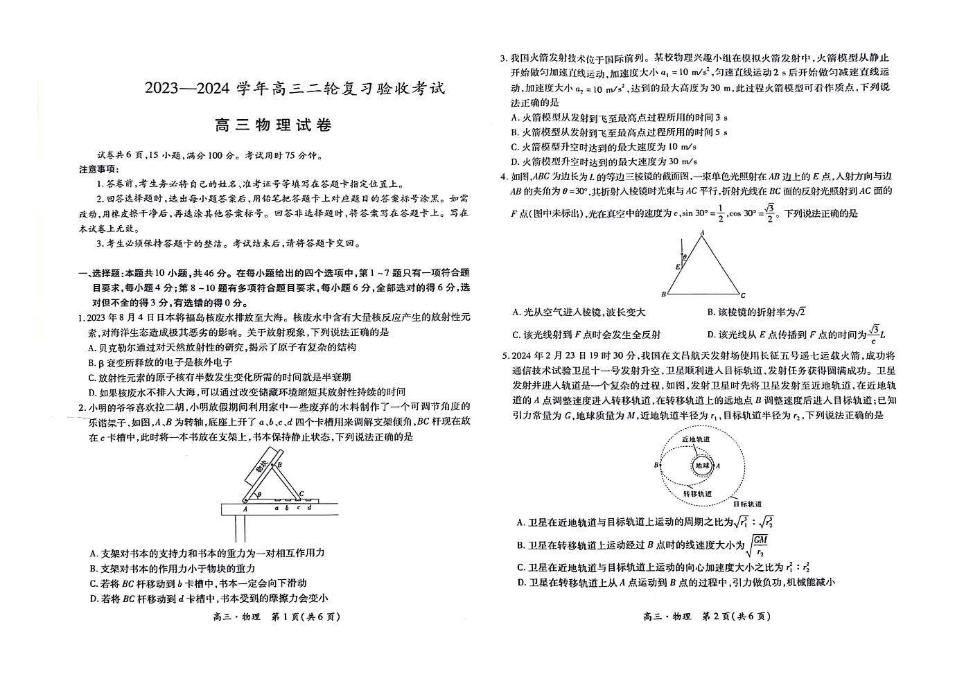 江西稳派2023-2024学年高三二轮复习验收考试+物理