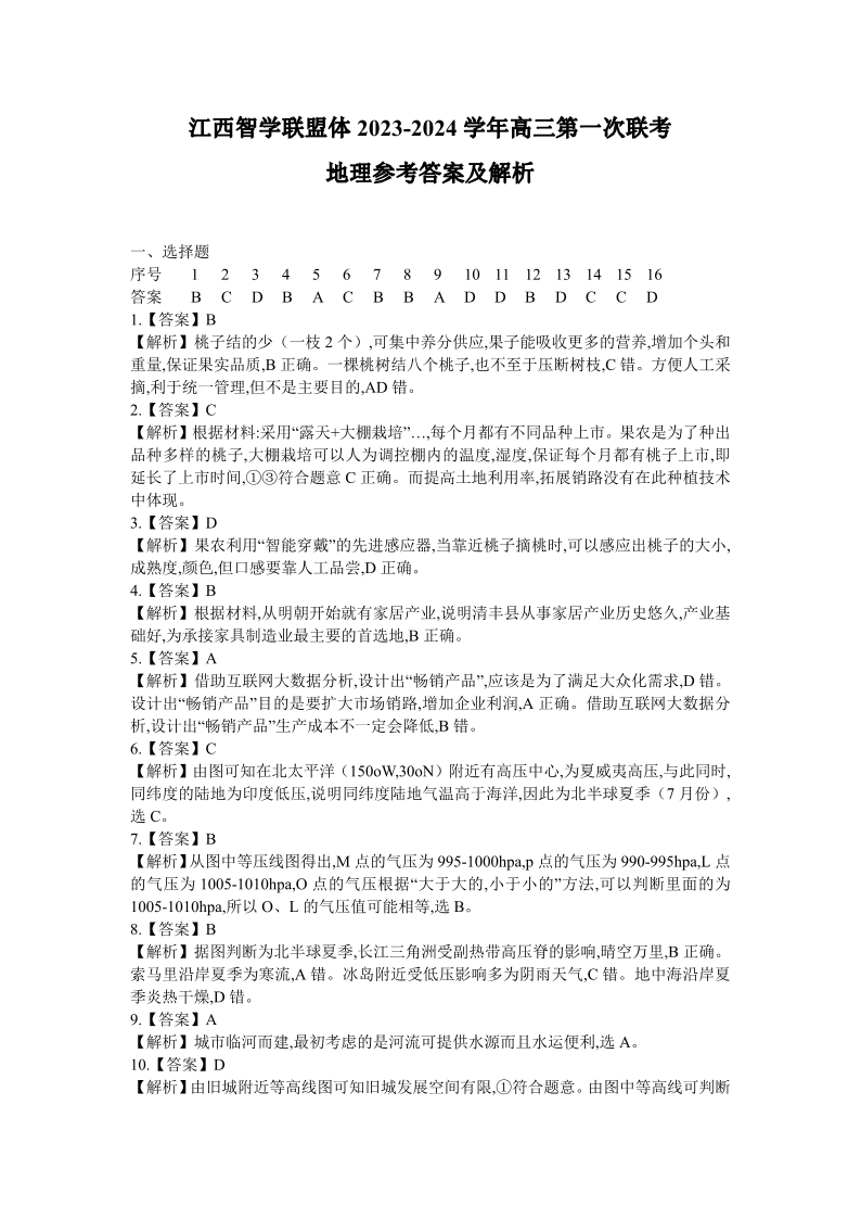 江西智学联盟体2023-2024学年高三第一次联考 地理答案