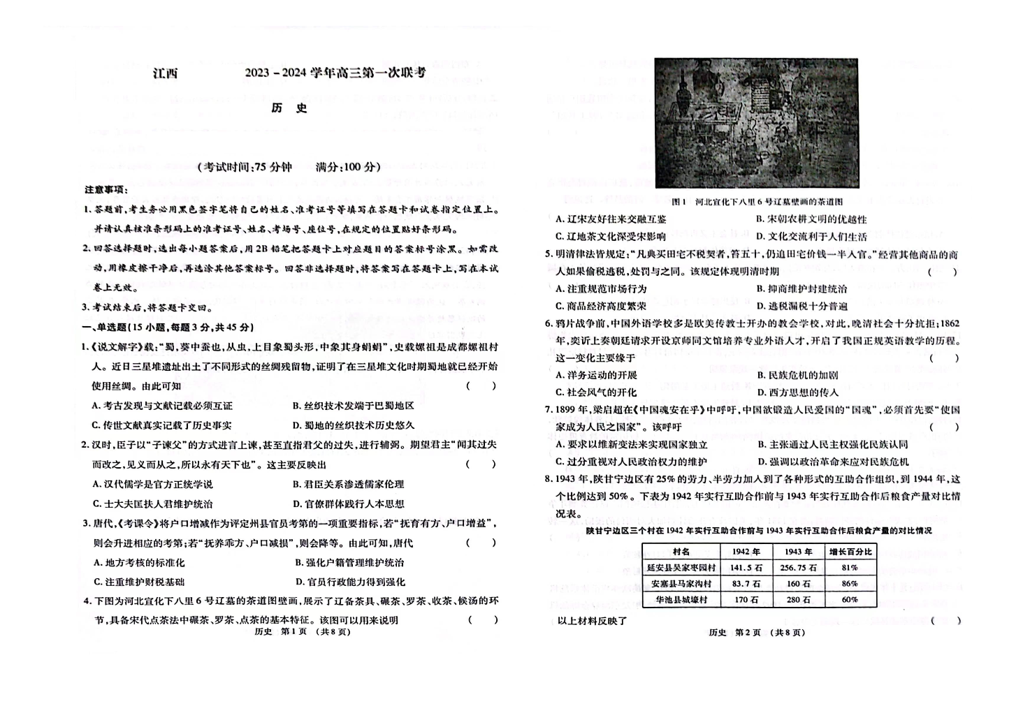 江西智学联盟体2023-2024学年高三第一次联考 历史