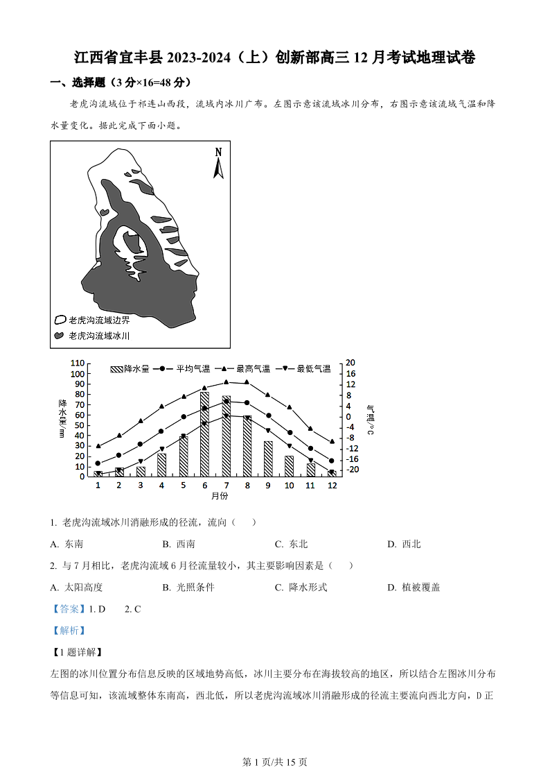 江西省宜春市宜丰中学2024届高三上学期12月月考 地理答案