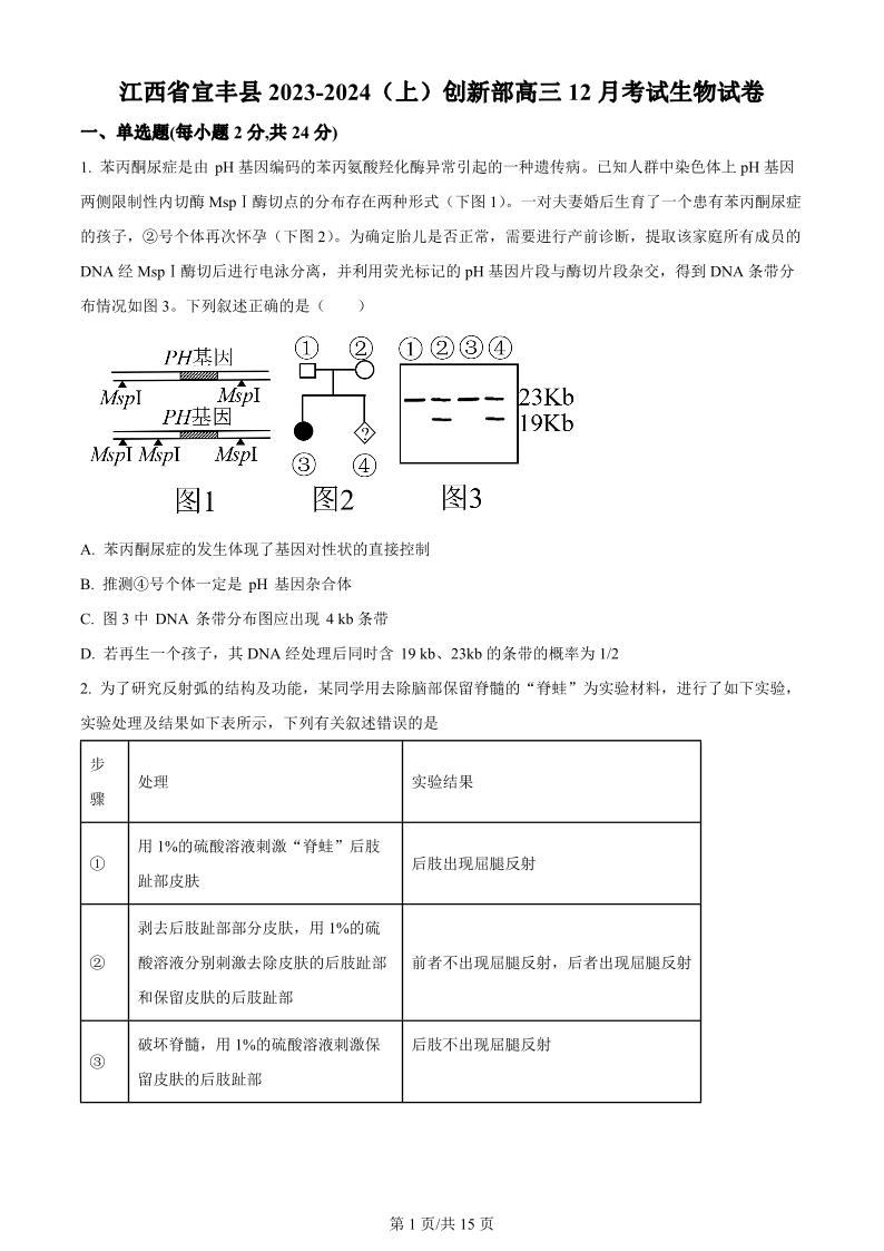 江西省宜春市宜丰中学2024届高三上学期12月月考 生物