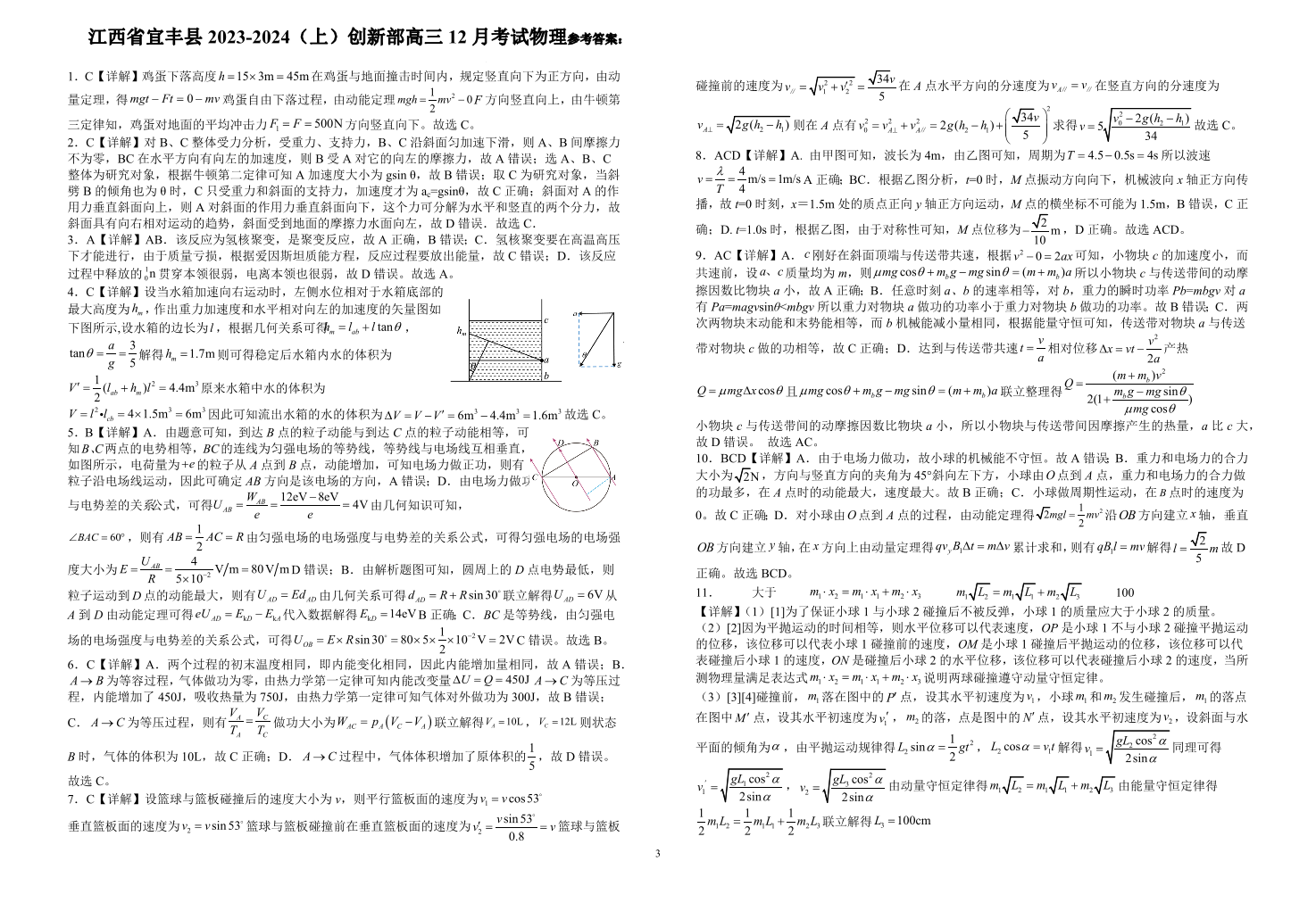 江西省宜春市宜丰中学2024届高三上学期12月月考 物理答案