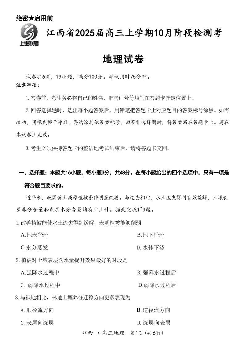 江西省稳派智慧上进联考2025届高三10月联考+地理