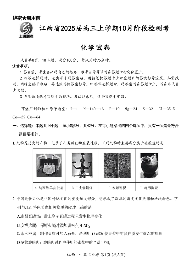 江西省稳派智慧上进联考2025届高三10月联考+化学