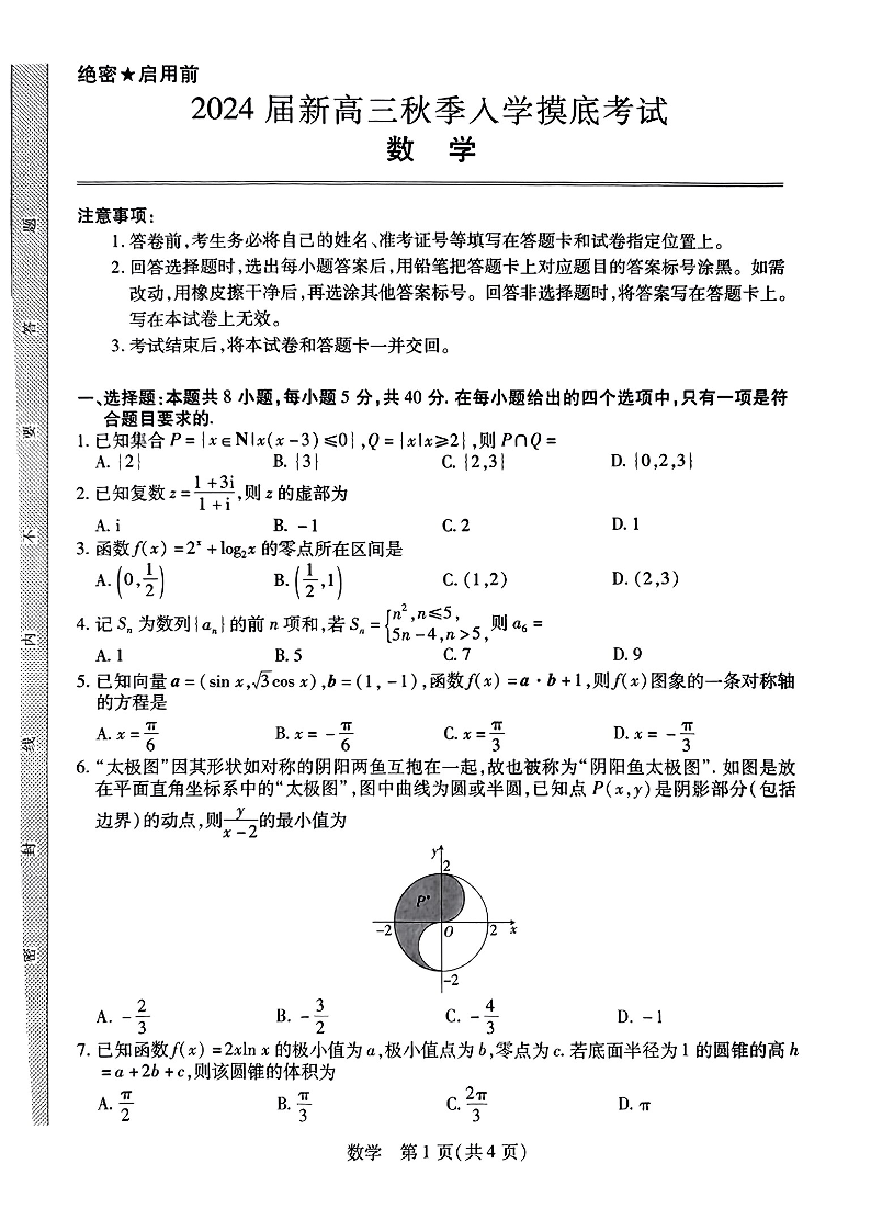 江西省稳派上进教育2024届高三上学期8月入学摸底考试 数学