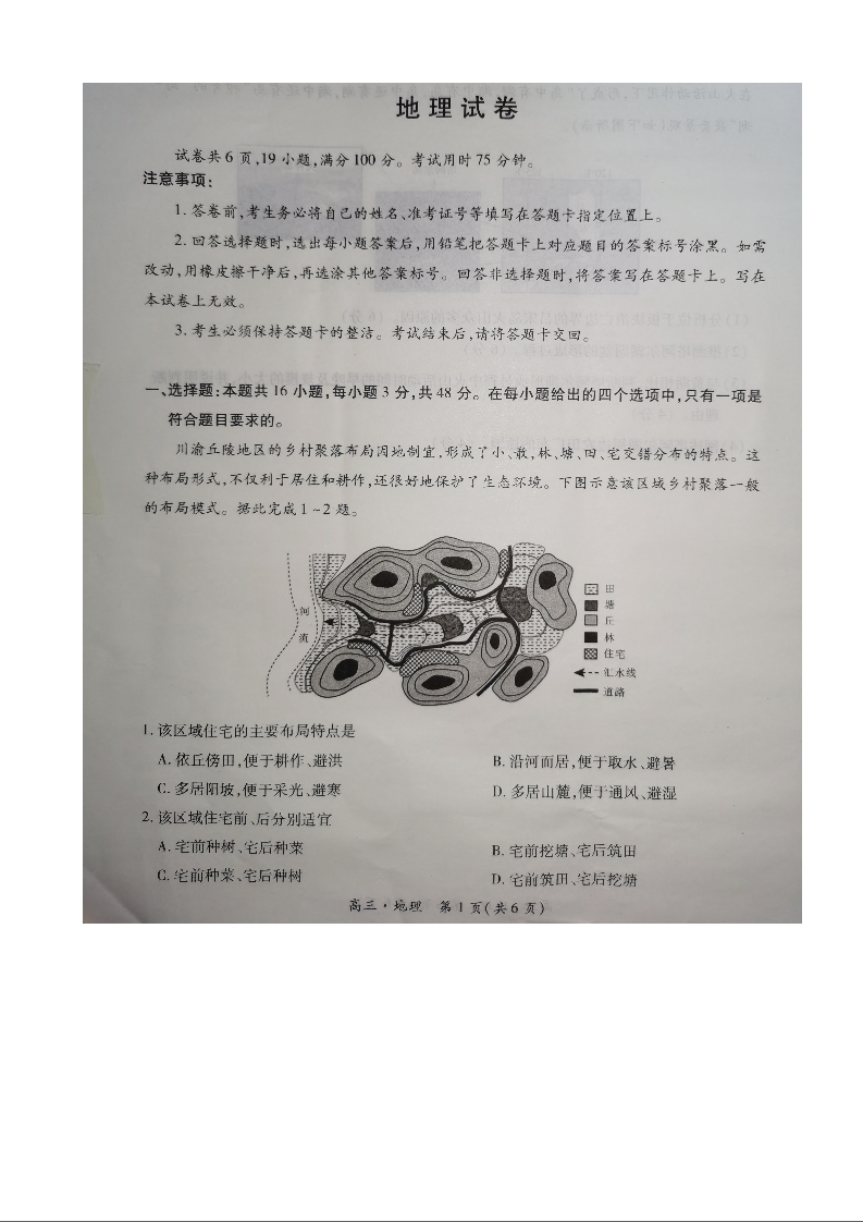 江西省稳派上进2025届新高三秋季入学摸底考试+地理