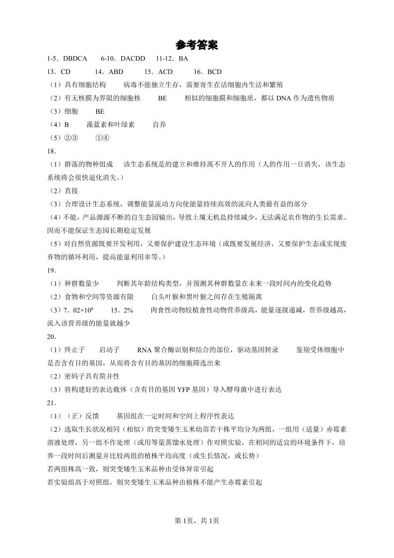江西省泰和中学2024届高三暑期质量检测 生物答案