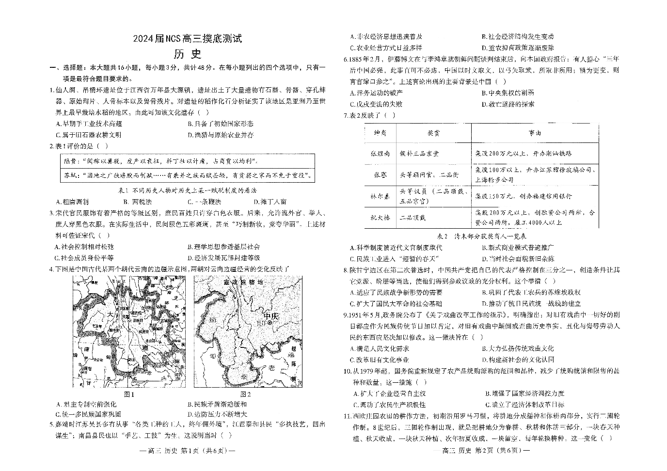 江西省南昌市2023-2024学年高三上学期开学考试(南昌零模) 历史