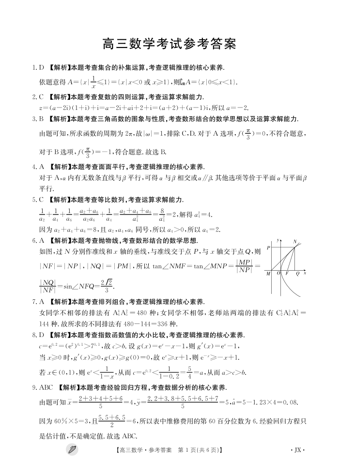 江西省九江市同文中学多校联考2024届高三下学期3月月考 数学答案