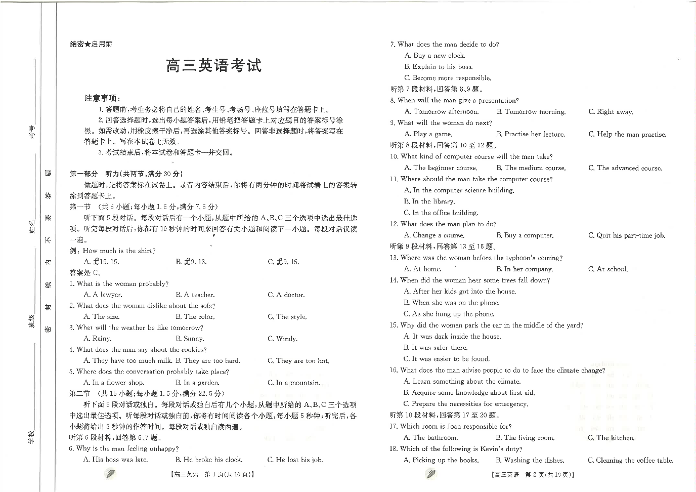 江西省九江市同文中学多校联考2024届高三下学期3月月考 英语