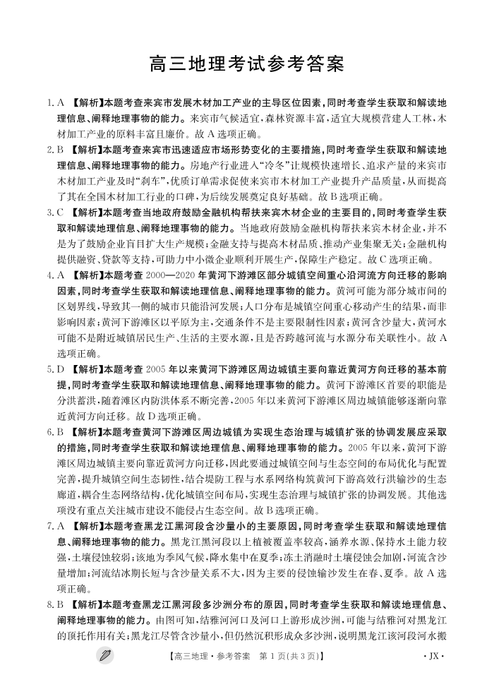 江西省九江市同文中学多校联考2024届高三下学期3月月考 地理答案