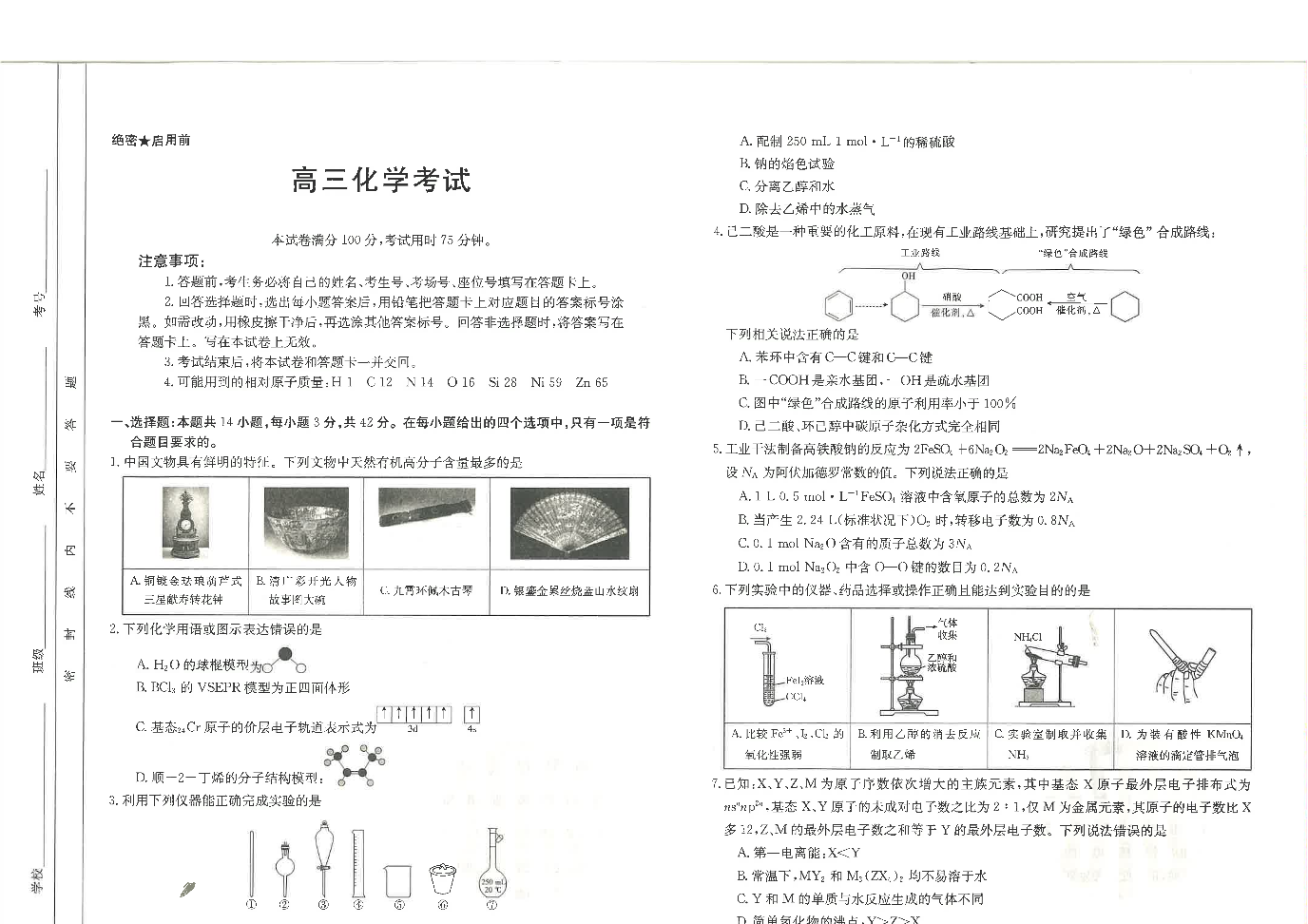 江西省九江市同文中学多校联考2024届高三下学期3月月考 化学