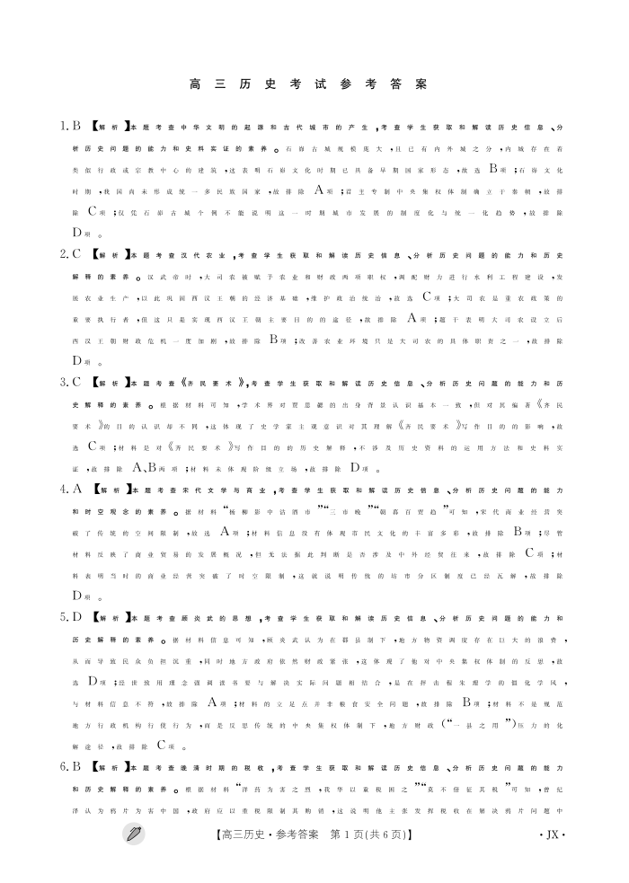江西省九江市同文中学多校联考2024届高三下学期3月月考 历史答案