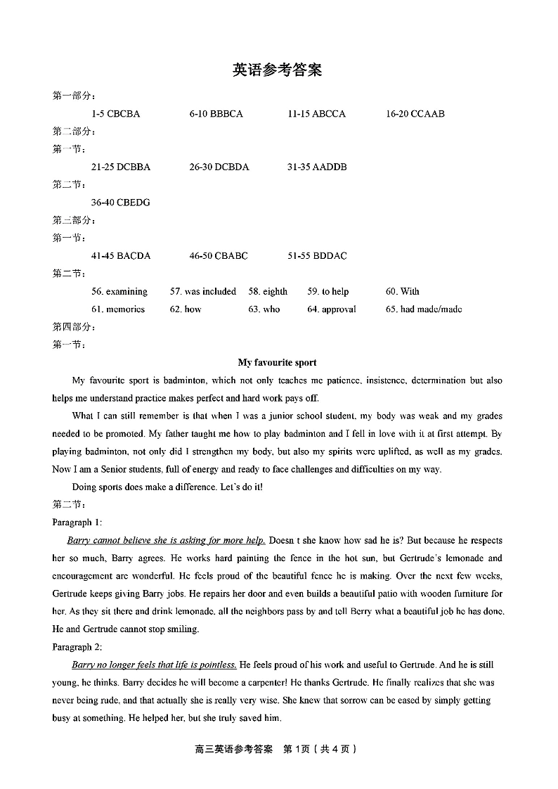 江西省九江市十校2023-2024学年高三第二次联考 英语答案