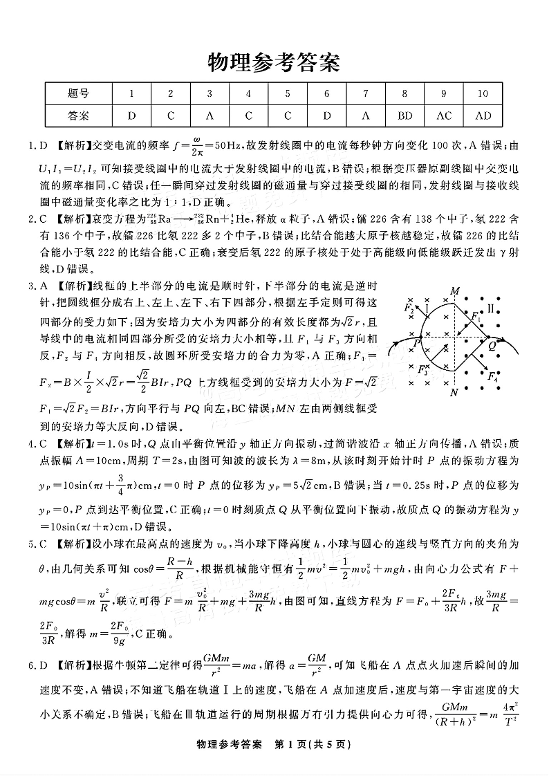 江西省九江市十校2023-2024学年高三第二次联考 物理答案