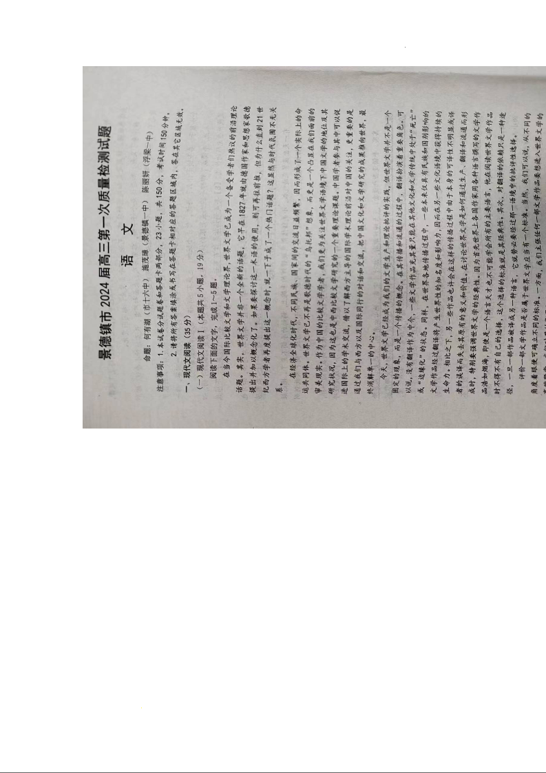 江西省景德镇市2023-2024学年高三上学期第一次质量检测 语文