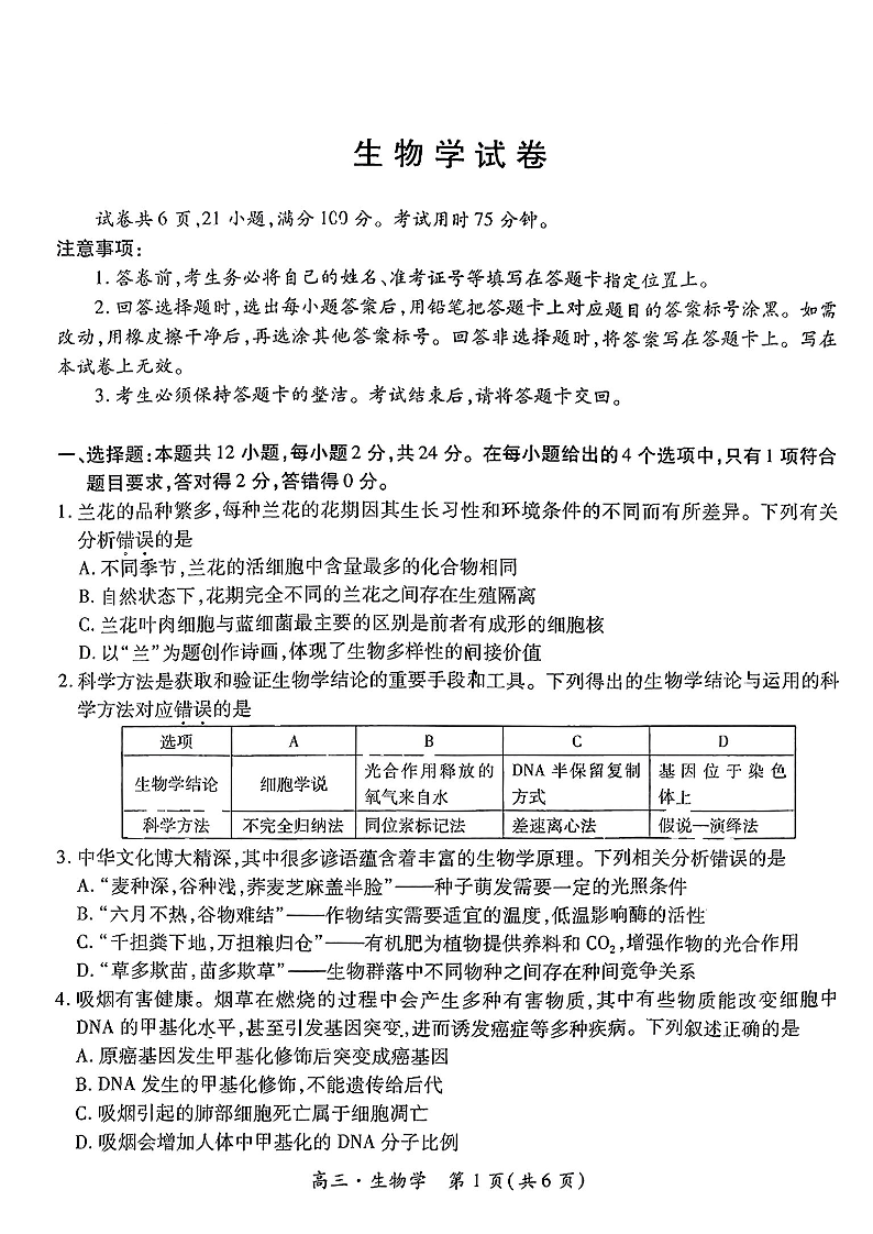 江西省红色十校2025届高三上学期第一次联考+生物